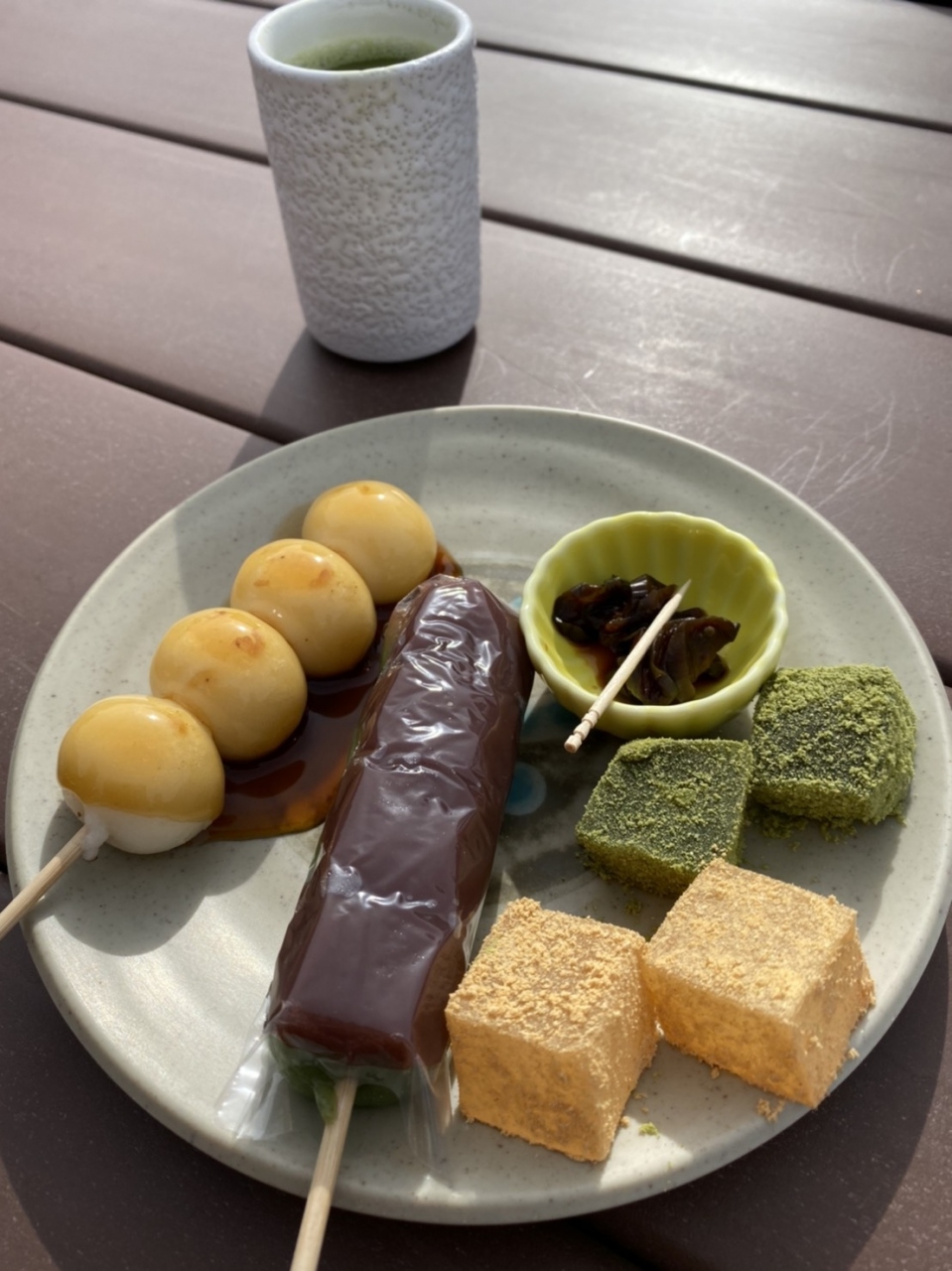 実は各々の施設を見学するのが有料であって、通り抜けるのは無料です。私は関所跡エリア内の御番茶屋で休憩するために中に入りました。昨年一度見学しているので、今年は見学代だと思って茶屋で一服しました。芦ノ湖の向こうに富士山が見えて最高のティータイムでした。