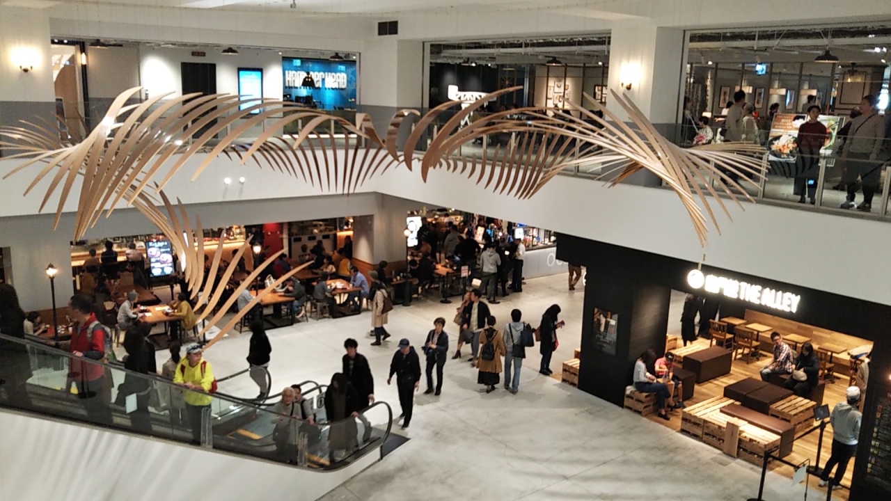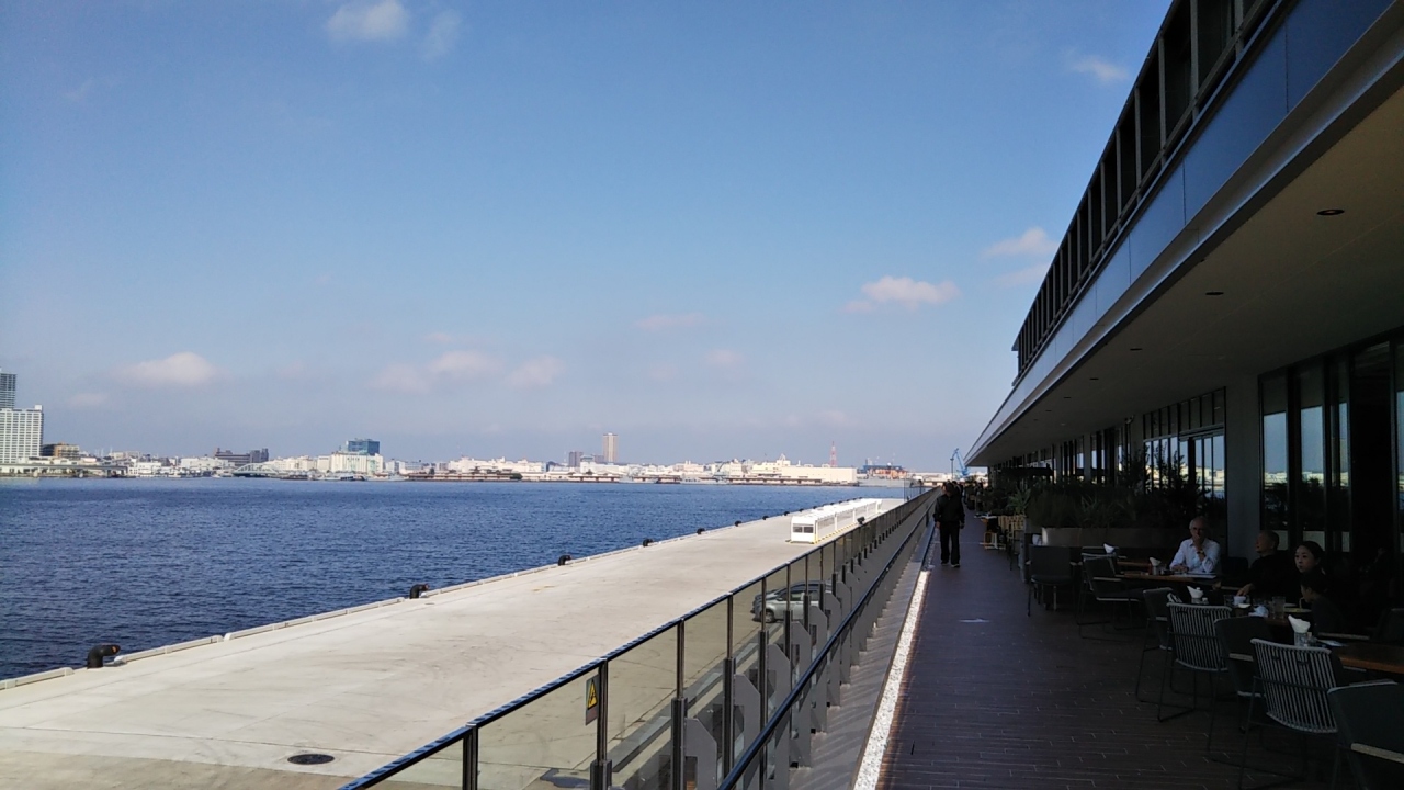 眺めの良い2階テラスからぐるり360度ベイブリッジ、大さん橋、観覧車、マリーン&ウォークを歩いて景色が楽しめます。、一階に有名らーめん数店舗、二階にテラスで食事が楽しめるレストランほか。青空で風の吹かない日がおススメです。