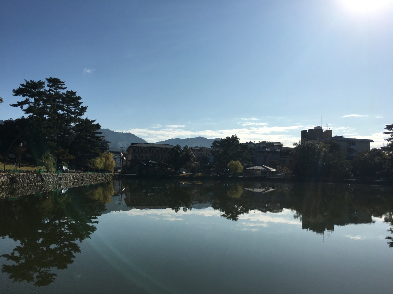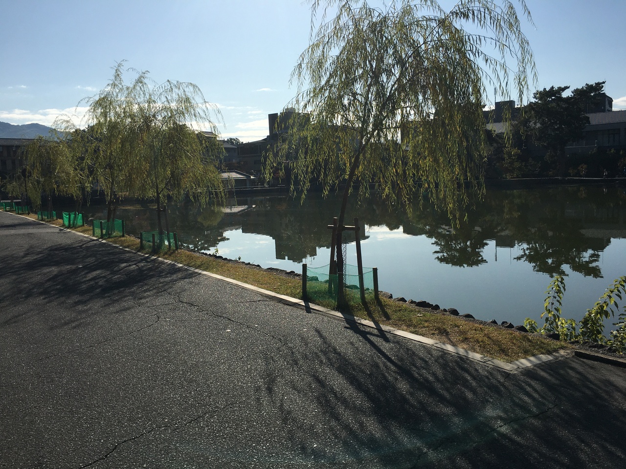 興福寺の裏にある穴場の比較的人が少ない場所でした。池の周りをゆったりと一周しました。池畔には、柳の木が立っているのが目立ちました。遠く遠見渡すと山々が見えて良い雰囲気でした。四角い池で水は濁っていました。