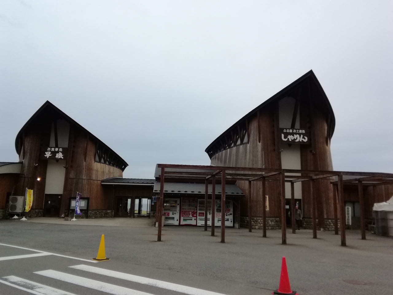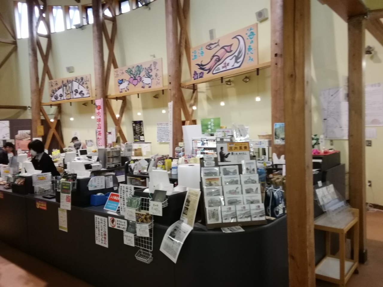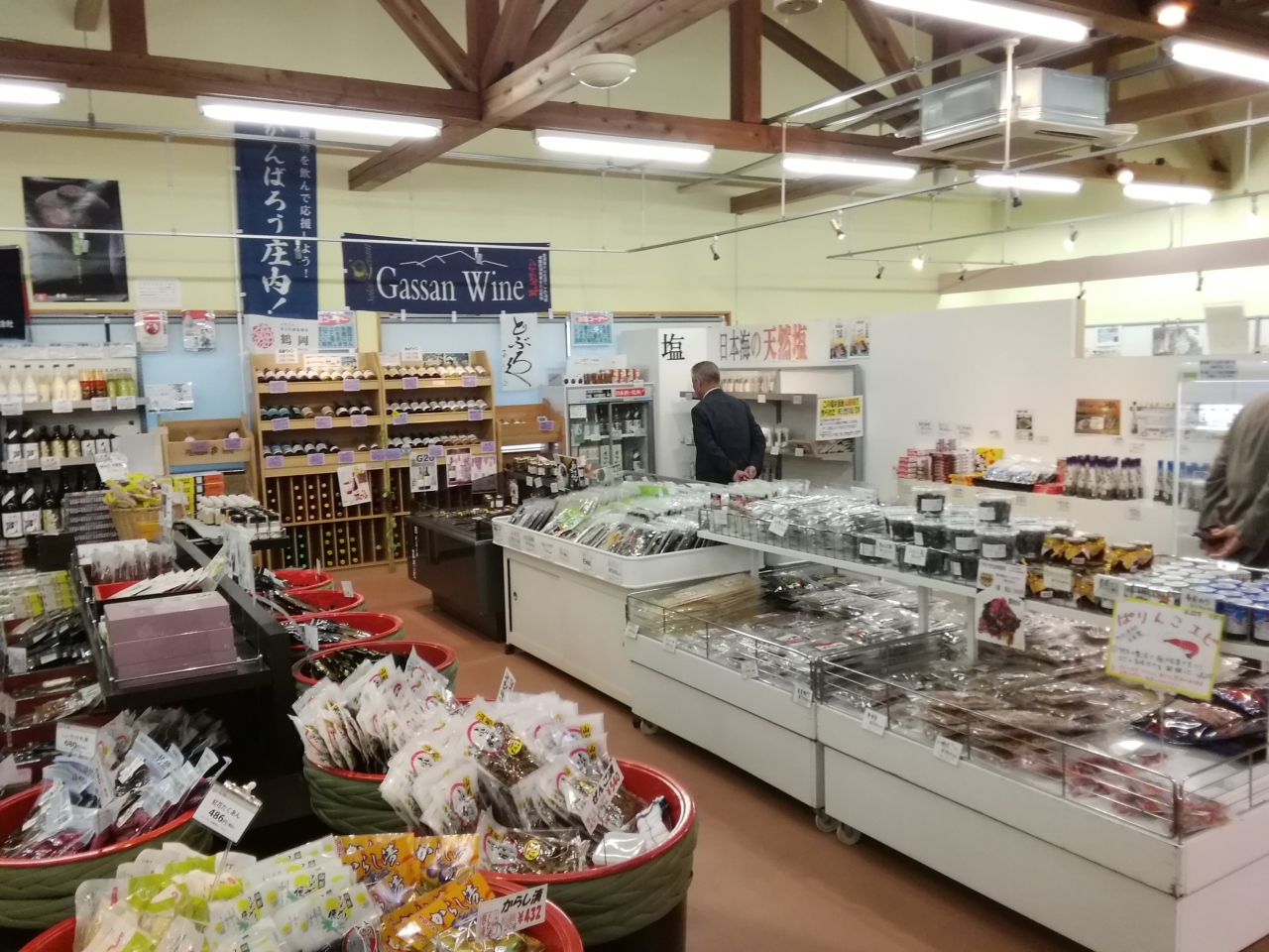 国道7号線の新潟県との県境にある夕陽のあつみふる里物産館しゃりんに立ち寄りました。日本海沿いにあるため、道の駅の裏の海岸からは遠く佐渡が島が眺められます。物産館は、地元の新鮮な野菜や魚介類の加工品など温海ならではのものを豊富に取り揃えていました。新潟と山形の県境は高速道路がないため、この国道を利用する際は、立ち寄るには便利な道の駅です。