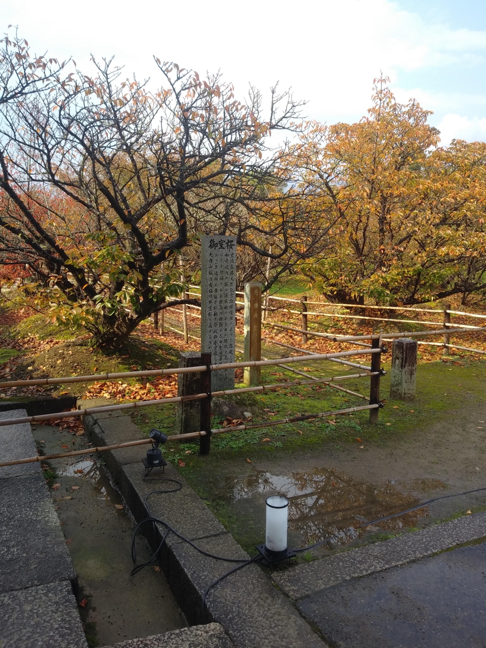 桜の季節ではなかったので枯れ木しかみられませんでしたが、観音堂と五重塔の間にありました。桜にしてはずいぶん背が低いように思いました。