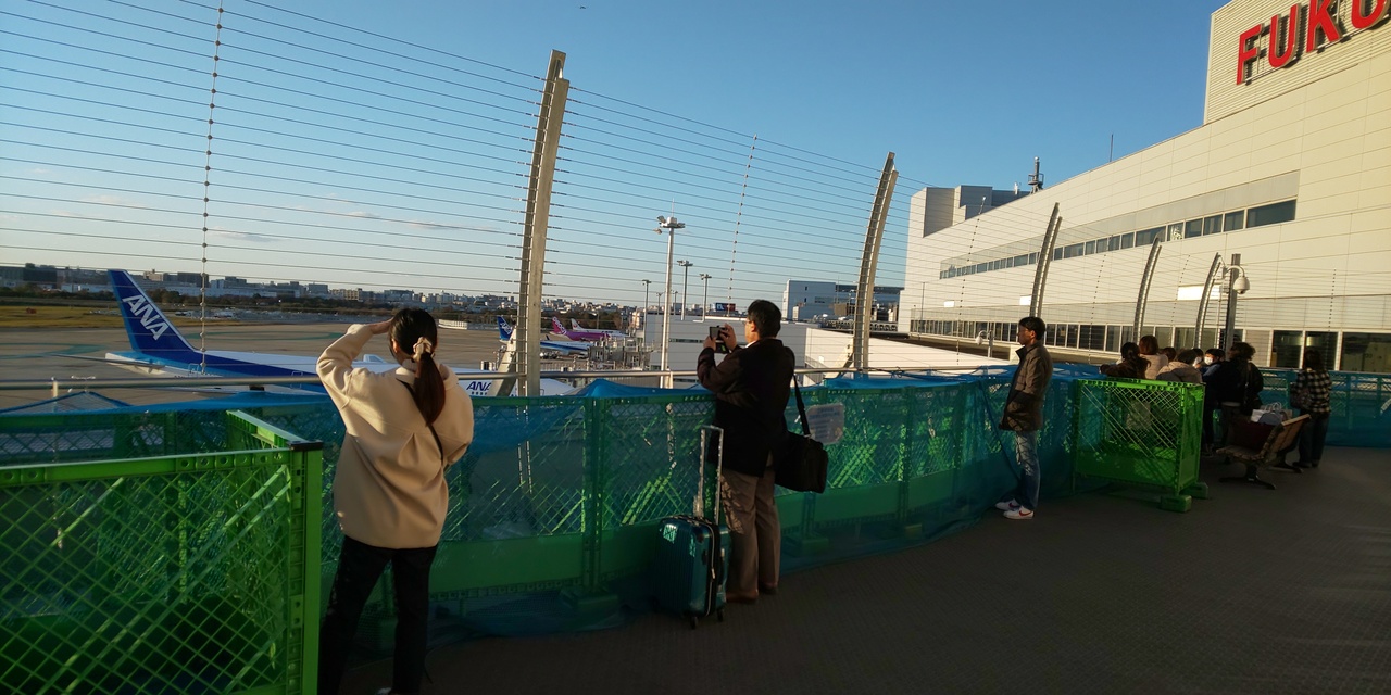 福岡空港国内線ターミナル四階からさらに階段を上った場所にある展望デッキ。