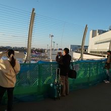 展望デッキからは、JAL、ANAなどの飛行機を眺めることができる。ベンチも少しあり、休憩することもできる。