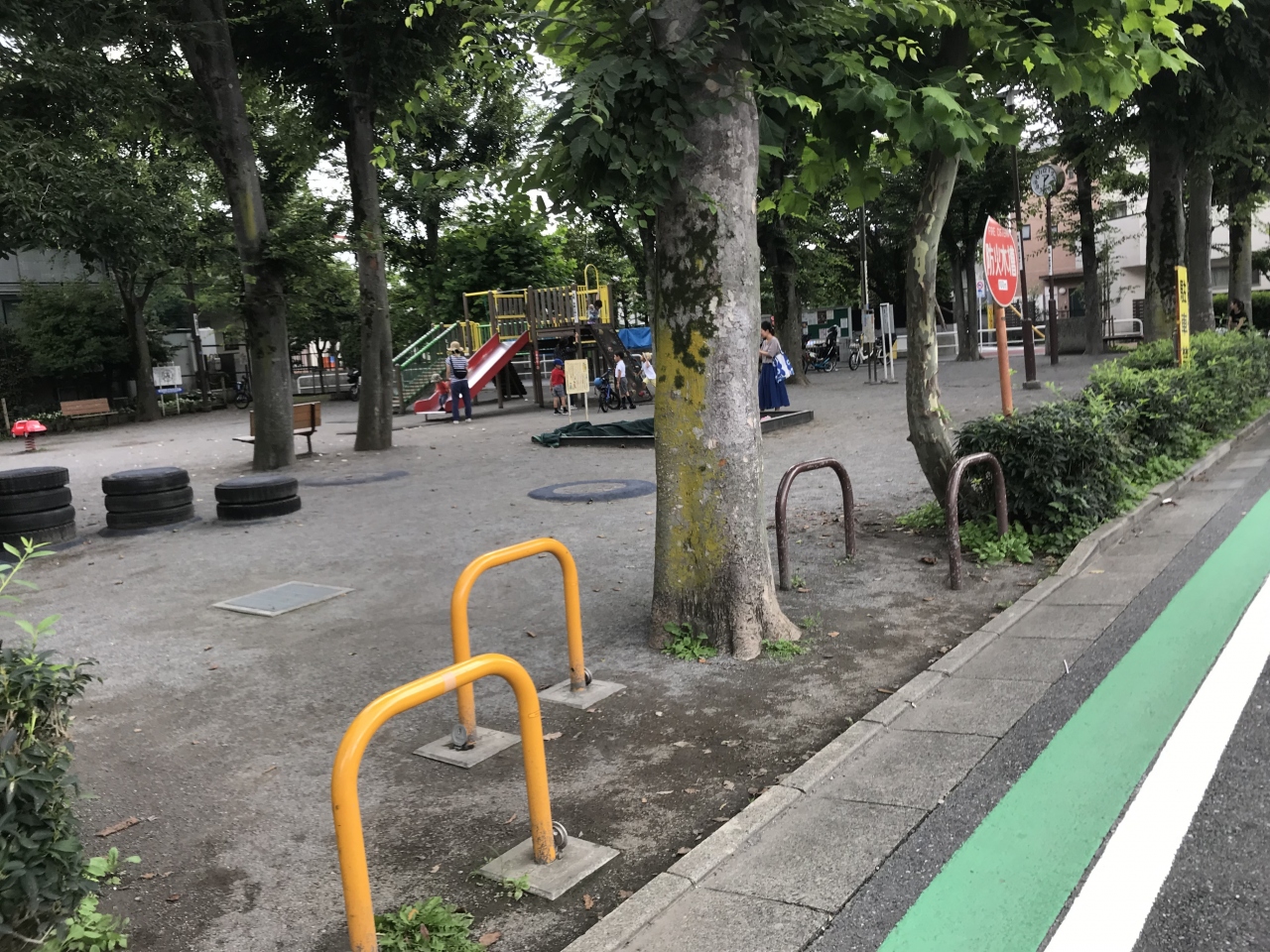 奥沢の住宅街にある公園です。結構広めの公園で、遊具もいろいろあって、子供たちを遊ばせるのにちょうどよい感じの公園でした。平日の昼過ぎに通りましたが、子供を遊ばせているお母さんたちのグループがいくつかありました。