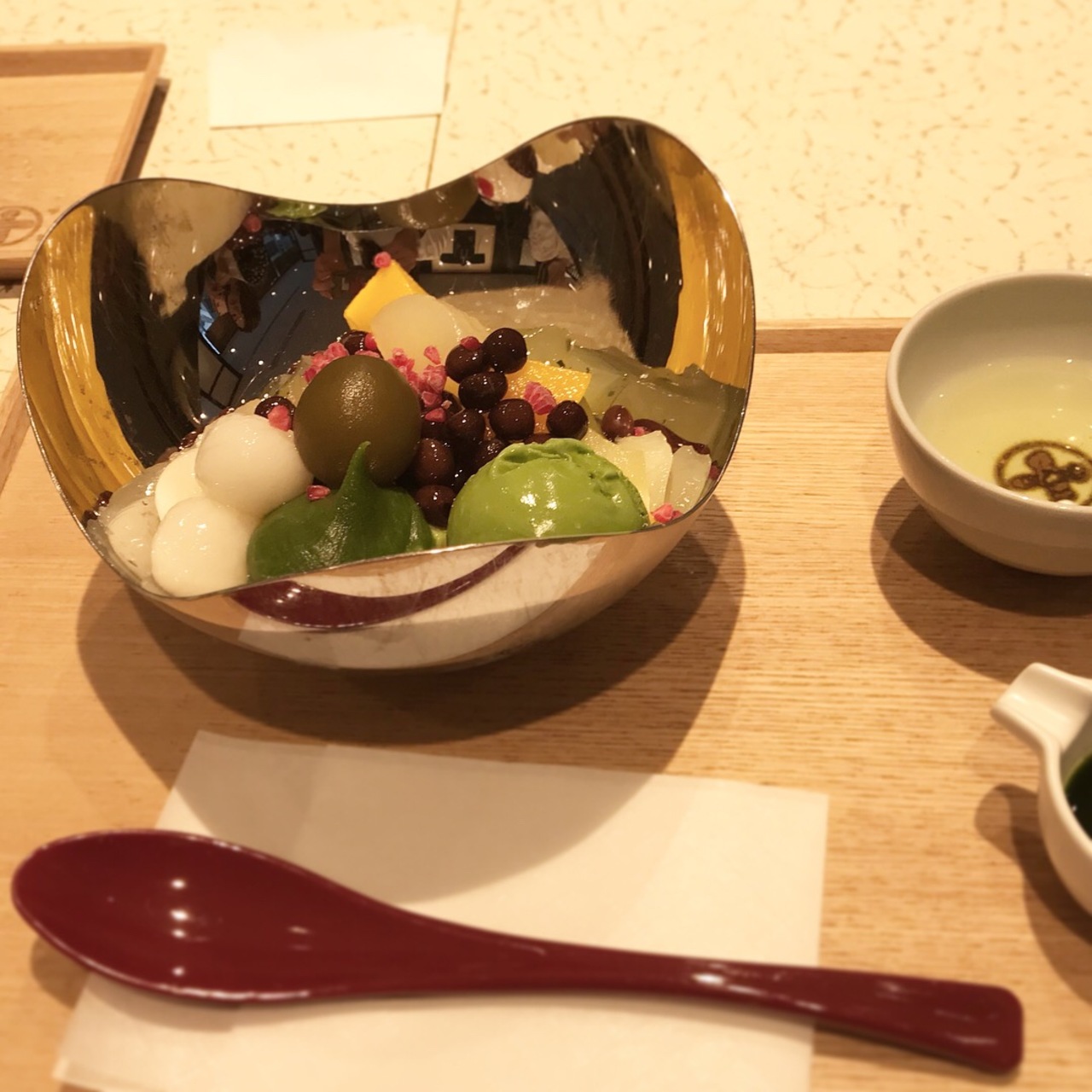 インスタで見て気になっていたので伺いました。お店は和風で明るくお洒落でした。友達がパフェを頼み、私はあんみつを頼みました。どちらもとっても美味しかったです。お茶屋さんなので、自由に飲める温かいお茶がとっても美味しかったです。