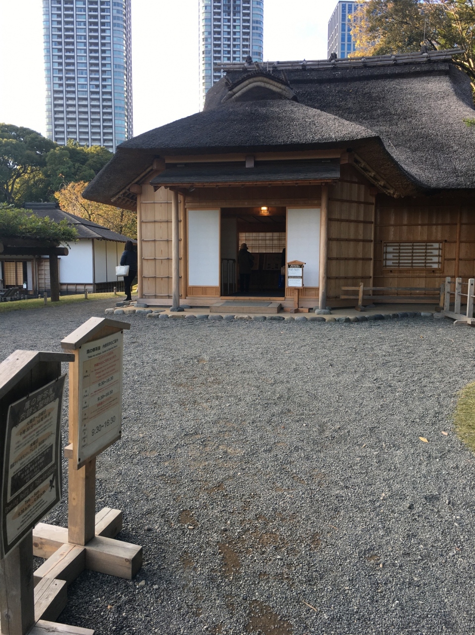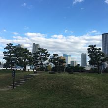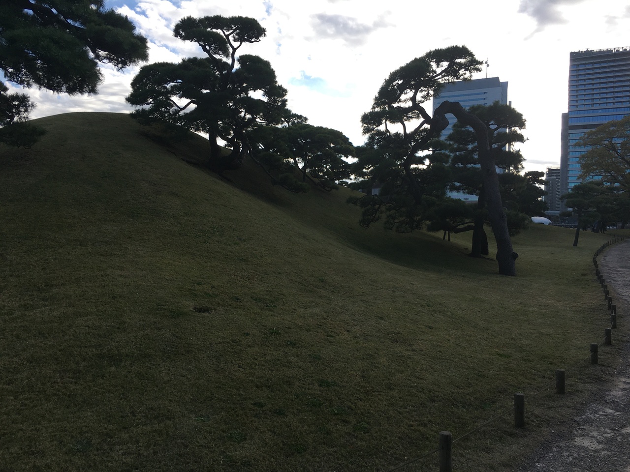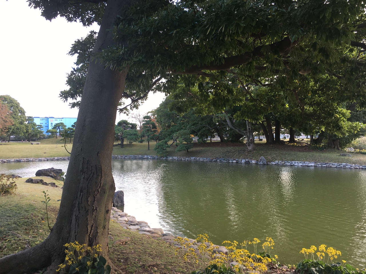 江戸時代の徳川将軍家の庭園だけあって広い庭園でした。茶室が4つあり、鷹狩りの場所跡もありました。小高いがあり庭園内を見渡せる場所でした。池の配置も見事で池に架かる橋ので眺めも良かったです。高層ビルに囲まれた庭園でした。
