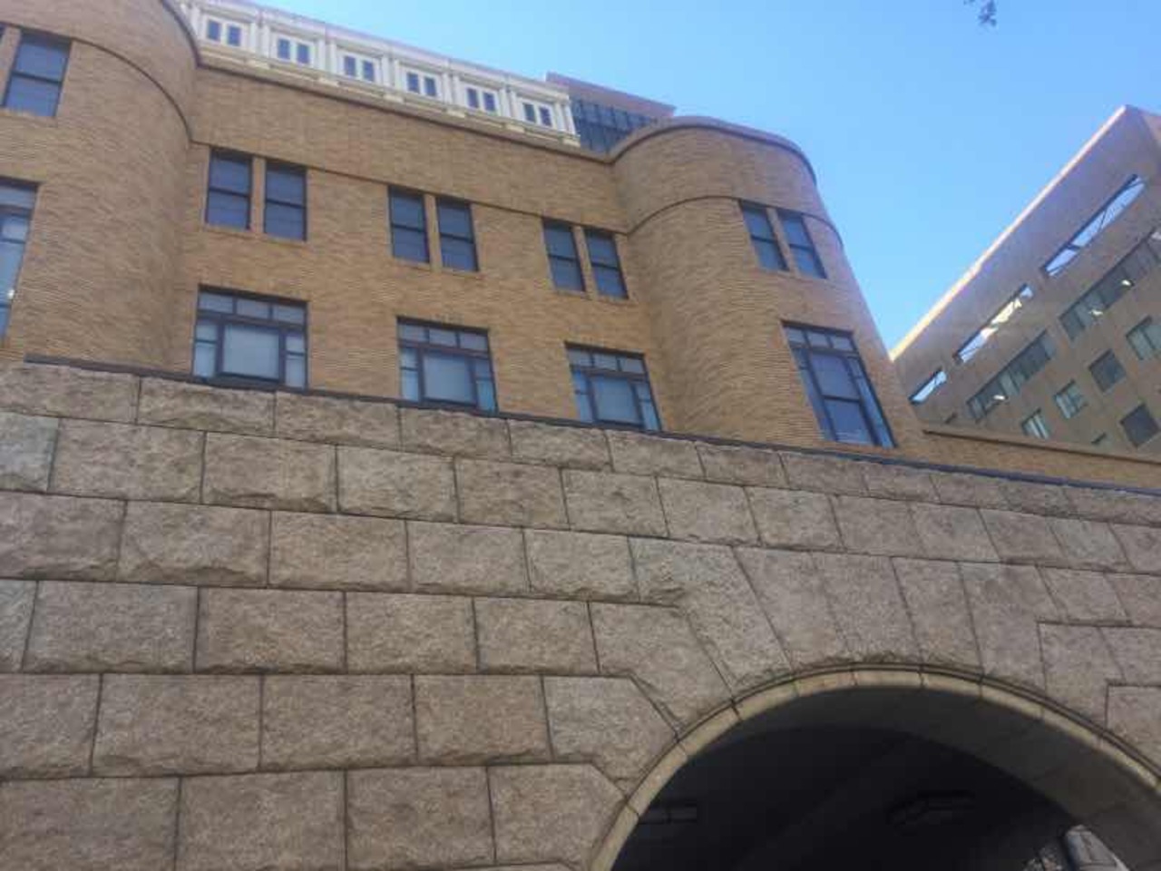 低層棟の部分は旧建物の外観を復元したものらしく、重厚さがあって、見応えあります。