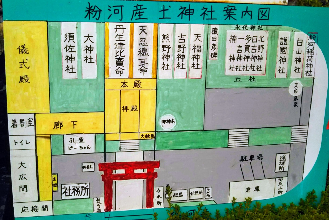味わいのある手書きの案内図によると沢山の境内社があり、粉河寺と共に今も地域の鎮守として信仰を集めている感じがしました。