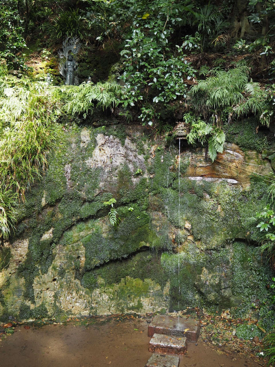 等々力渓谷の散策ルート沿いにある小さな滝です。等々力駅から等々力渓谷を散策すると、渓谷の一番奥の部分、等々力不動尊へと続く登り階段の手前にありました。滝といっても一筋の水が竜の口からでているこじんまりとした滝でした。