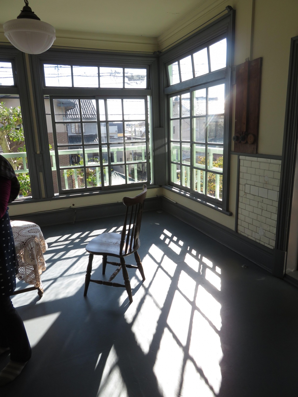 特に2階にある、当時の診察室は必見、青緑色の床に映えてとてもすてきなバルコニーになっています。