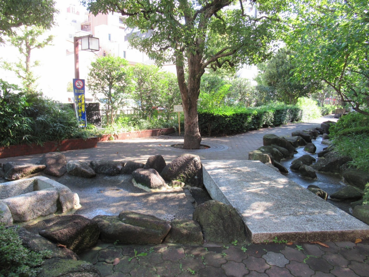 - 地下鉄・浜町駅出入口A2を出てそのまま緑地帯の中などを3分位進んだ浜町緑道を右折して中の通路を1分強行った右手(日本橋浜町側)の植え込みです