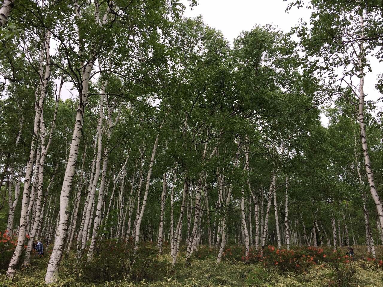白樺平の中を散策しに行きました。予想もしなかったのですが、かっこうの鳴き声が聞こえて早朝にとても清々しい時間を楽しむことができました。足元はかなり雨でぬれていたので、泥がすべって大変だったので、気を付けてください。