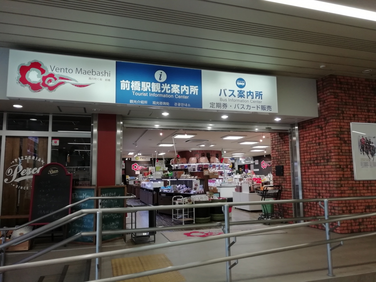 JR前橋駅改札前にある観光案内所です。案内所と言っても土産物売店やバス案内所も兼ねているマルチ店舗です。観光案内のカウンターは店舗中央辺りでパンフレットも置かれています。駅に着いたらまずリサーチを、オススメです、是非。