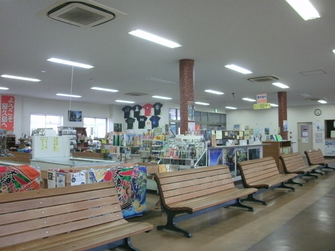鹿児島・種子島方面のフェリーや高速船航路が発着する屋久島の海の玄関口です。高速船トッピーが発着する桟橋の前に待合室が2か所ありどちらもお土産を売っていますが、桟橋に向かって右側の待合室(高速船ロケットターミナル)の方が品ぞろえが良いし、観光案内所もあって使い勝手がよかった。お菓子をお土産に買うのなら、5分ほど歩いて県道に出ると屋久島観光センターがあり、試食ができるものが多いのでオススメです。