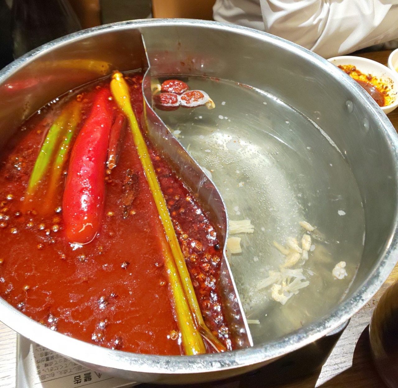 入口ですでに中華香辛料の香り。火鍋は干し海老出汁と麻辣の2種のスープ、つけだれは山椒と醤油の練ったようなのと、卵黄+白ごまのマイルドの2種。お肉の量が結構多いのに加え鶏、海鮮のつみれにバリエーション豊かな野菜も加わって満腹になります。ホールスタッフがもうちょっとこなれてくれば言うことないんですが。