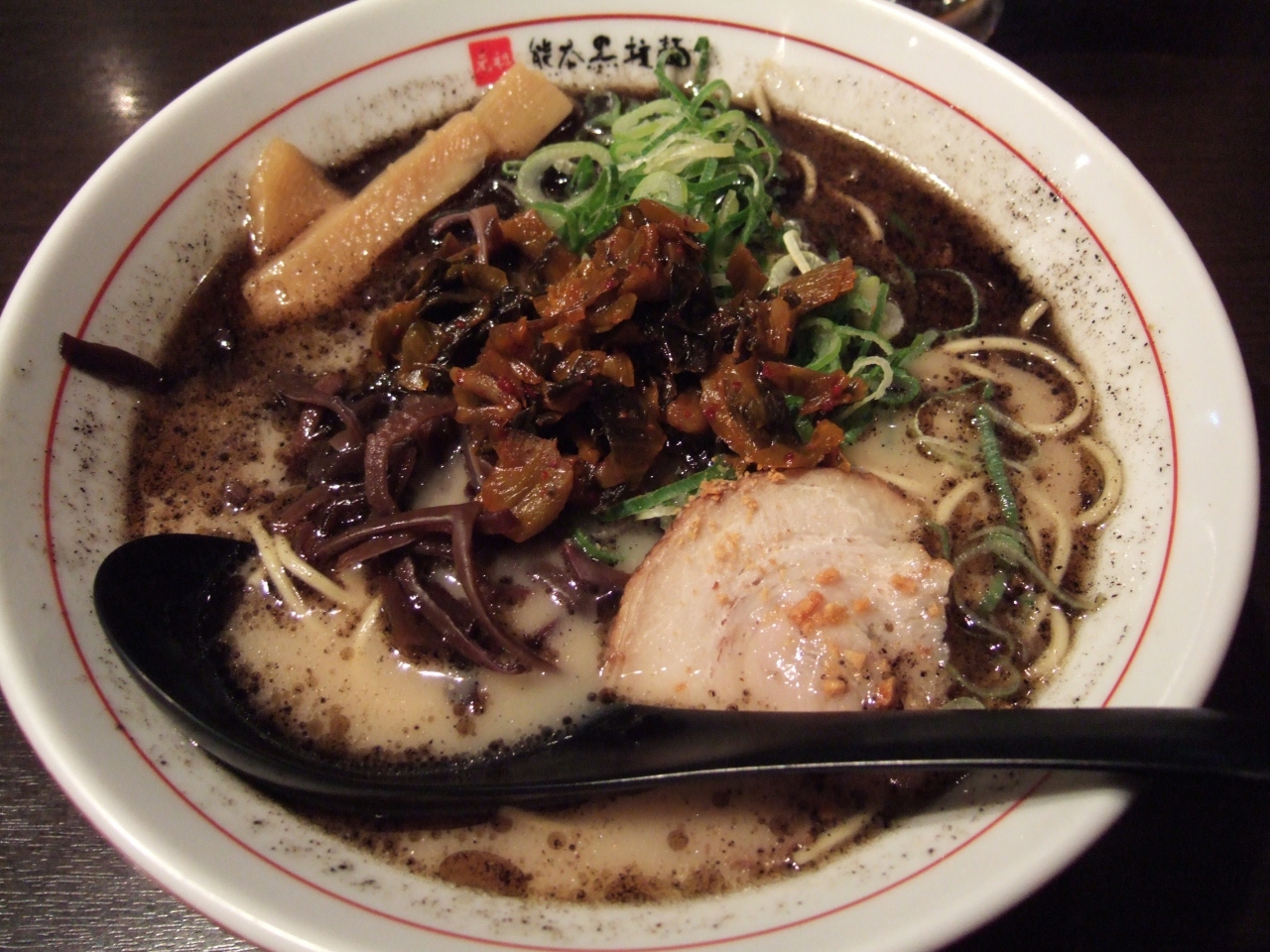 センター北、ノースポートモールの5階にあるラーメン屋。娘が餃子が食べたいというので寄りました。名前は熊本らしいですが、博多ラーメンもあります。高菜のせ熊本ラーメンをオーダーしましたが、娘がかなり食べてしまったので替え玉を頼むと、博多ラーメンの麺で出てきました。