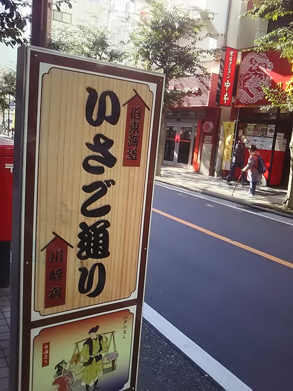 川崎の駅前の旧東海道の通りになります。商店街と名前がありますがどちらかでば郵便局とか信用金庫などがあってオフィス街のイメージが強いですが東に向かえば向かうほど飲食店が増えてくる通りになりまし。旧東海道の歴史的な紹介などもしている
