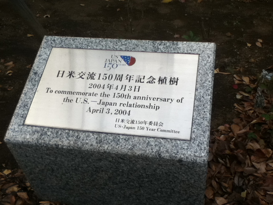 日米交流150周年記念植樹ハナミズキは日本大通り駅近くの開港広場の奥にある。お勧めの点は、このハナミズキは日米和親条約締結から150年目の2004年に植えられたこと、この時の記念式典には当時の首相や米国駐日大使等が出席し国大統領からのビデオメッセージも放映されたこと、ハナミズキは訪問時もしっかりと育っていることである。訪問時の感想は、江戸時代、徳川幕府とアメリカ政府が日米和親条約を締結してから太平洋戦争等の難しい関係の時期もあったものの長い間、政府はもちろん、民間の取組みにより友好関係が継続していることを改めて認識することができ訪問して良かった。