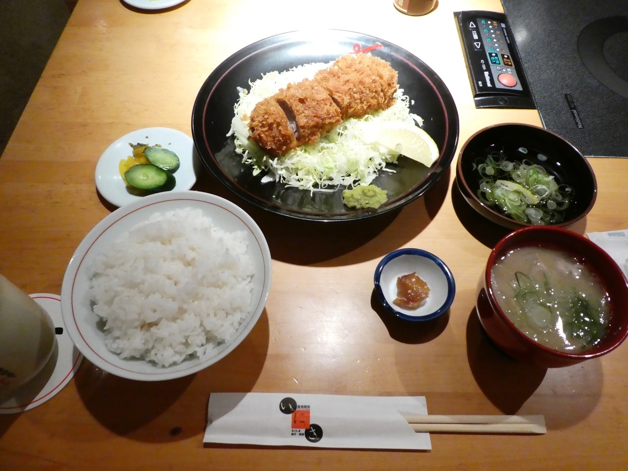 料亭のようないい雰囲気の店構えはそのまま。さて、はじめて夕食のメニューを見ると、コースしたてがほとんどで、簡単な夕食になるメニューはほとんどなく。ありゃと思ったのですが、その中でもおもしろかったナスと豚肉のミルフィーユしたてのとんかつにしました。面白いとりあわせですが、結構、食感も味もバランスが取れていて美味しく、これはすばらしくおすすめです。