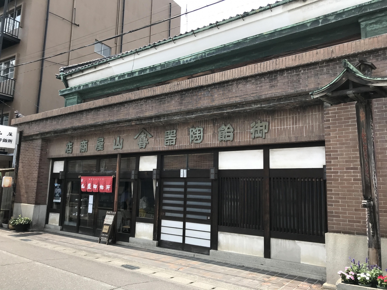 女鳥羽川から見るとちょうどお店の裏側がみえるのですが、最初大きな蔵と塀が目に入り、造り酒屋さんかと思って表に回ると昔ながらの、もち米を使った飴屋さんでした。飴を買って他のお店に行くと、袋を見た地元の店員の方が、よく山屋さんご存じですねと皆声をかけてくれます。地元では有名な老舗の飴屋さんだそうです。
