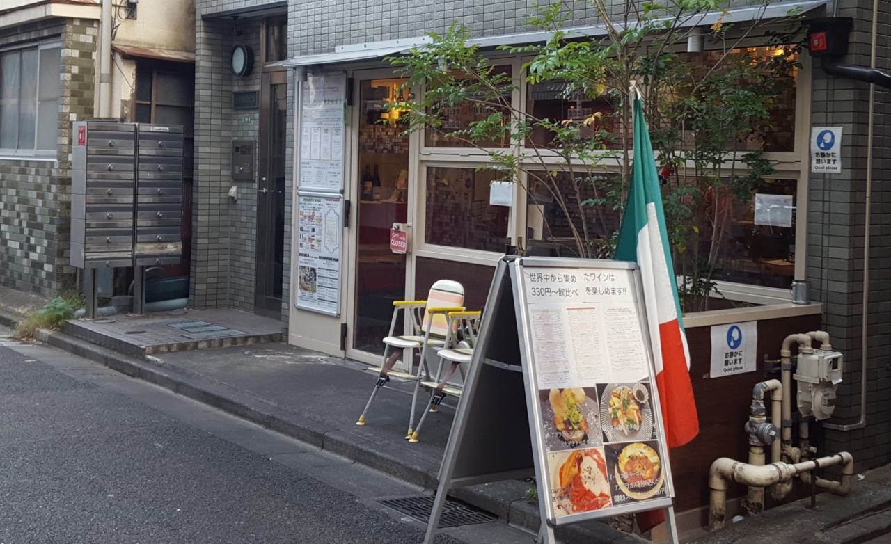 【外観とアクセス】週末の昼間で、少し時間が遅くなり、根津駅のそば(予定していた店のそば)で見つけ、初見で入った店。駅からほんの2,3分だから便利なはずなんだけど、不忍通りから一本入った道であまり目立たない。外観の雰囲気のとおり、イタリアの家庭料理、といった感じ。