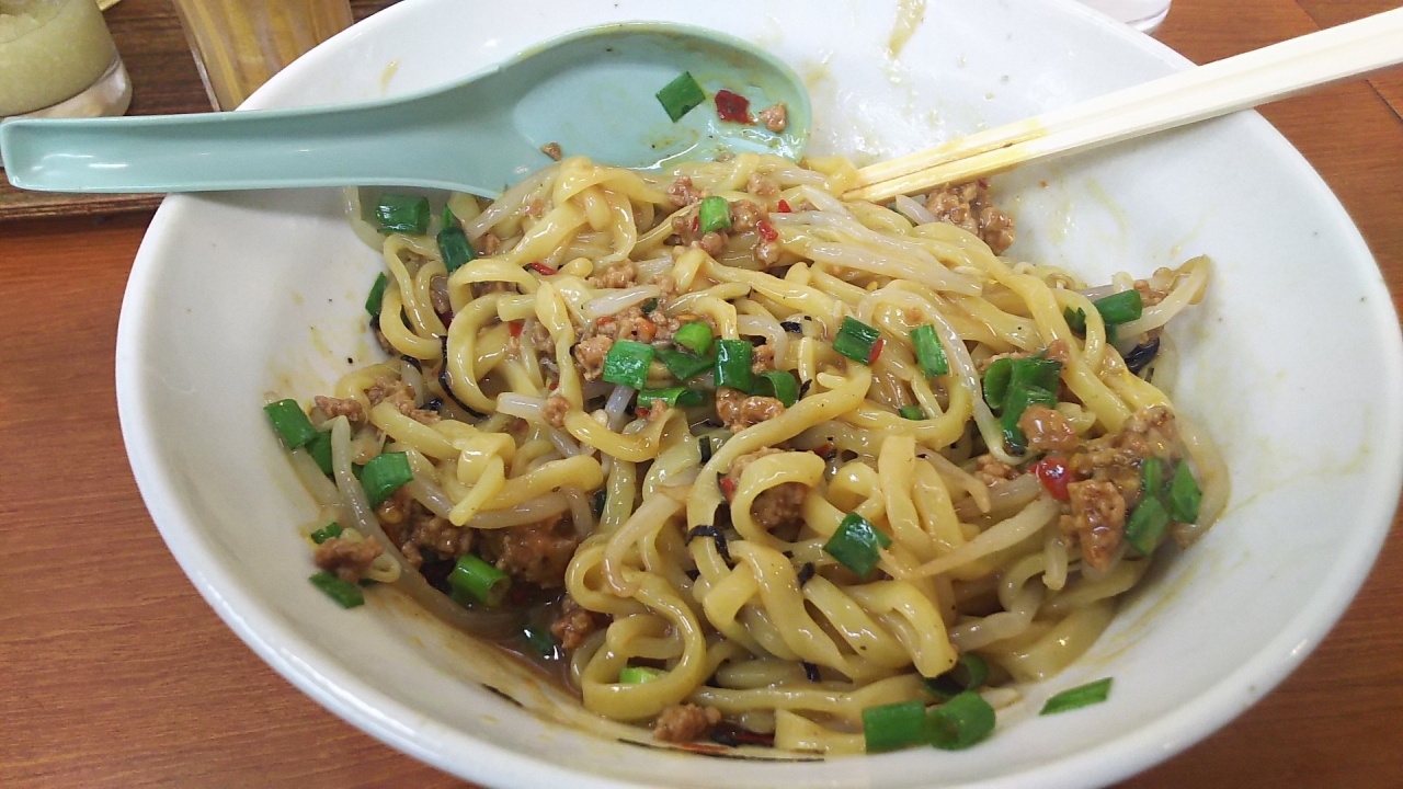 横浜駅西口にあり、出張時の乗り継ぎで時間があり、行列が店外にはみ出していない時だけ食べている。今回はちょっと変わり種の「まぜソバ」を注文。しっかり味の付いた挽肉と生の卵黄をよーくかき混ぜ、途中ラー油なども振りながら一気に完食。