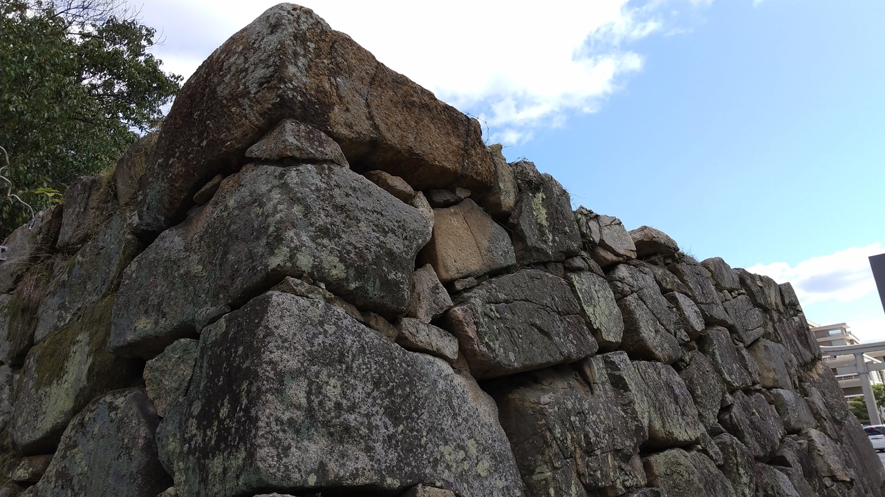 広島城の東側にある裏御門跡。櫓や門は原爆で倒壊してしまったとのことで,今では石垣だけが残っていますが,石垣は大きく立派で,門の幅は広く,立派な裏御門だったのだろうと想像できます。倒壊前の立派な門,見てみたかったです。