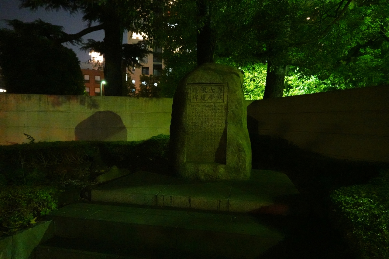 キタノホテルに宿泊した際、すぐ近くにある「華族女学校遺蹟碑」まで足を運んでみました。参議院議長公邸東門の前にありますが、周囲にほとんど灯かりの無い場所で、文字すら読み取るのが難しい状況でした。かなり立派な史跡で、昼間に見ると全く異なる印象になると思います。