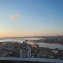 そのまま日が暮れると、眼下の釧路川沿いの建物などの灯りが美しい夜景を楽しむことができます。