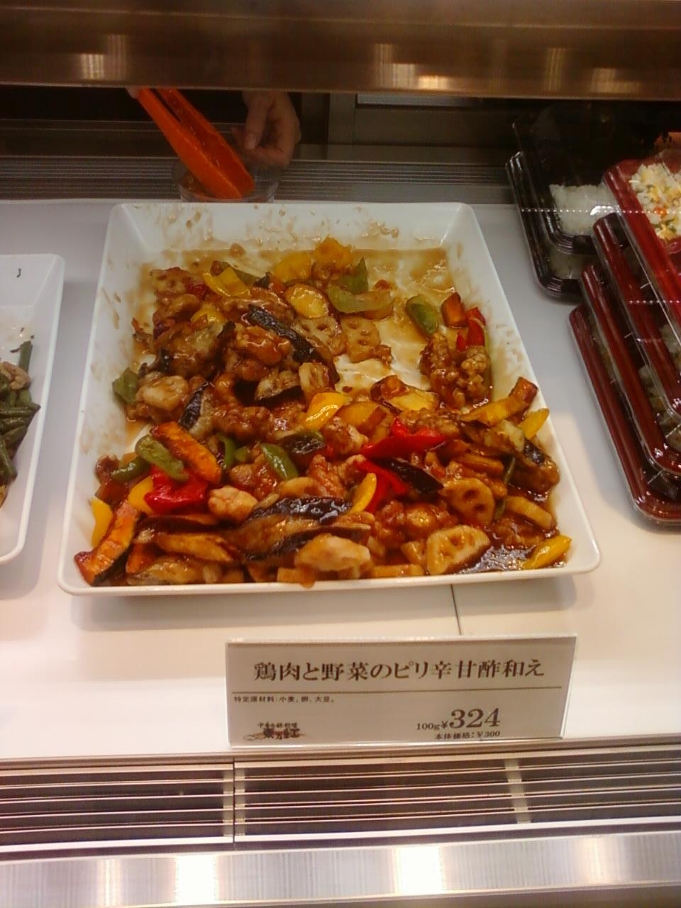 ここの東方紅は、恵比寿の駅に直結している、アトレ本館にあるお店です。いくつかテイクアウト用のお惣菜か売られている場所にあります。お店自体は非常に小さいのですが、縦スペースをうまく利用して、たくさんのお惣菜やお弁当が紹介されています。鶏肉と秋野菜のピリ辛甘酢和えを頂きました、ちょうど良いバランスの味付けで、鶏肉の衣に染み込んだソースがとても美味しかったてす。
