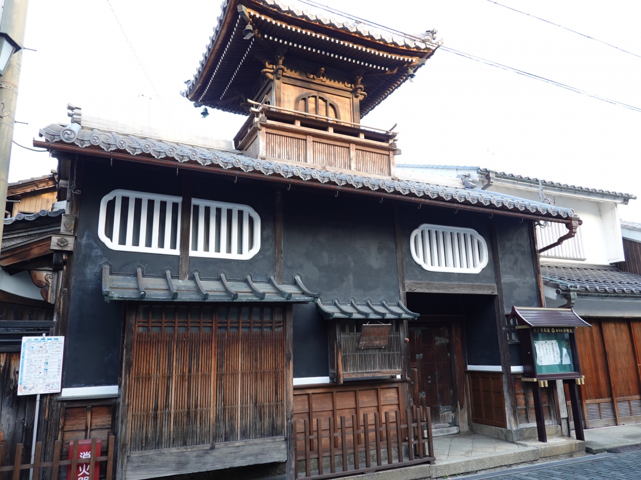 歴史的な建物が並ぶ黒壁スクエアにおいて、ひと際目立つのが浄琳寺です。北国街道沿いにあるお寺ですが、最初はお寺とは分かりませんでした。太鼓櫓と呼ばれている突き出た屋根が遠くからも目を引きます。漆黒の壁に白い格子の入った窓もとても印象的でした。