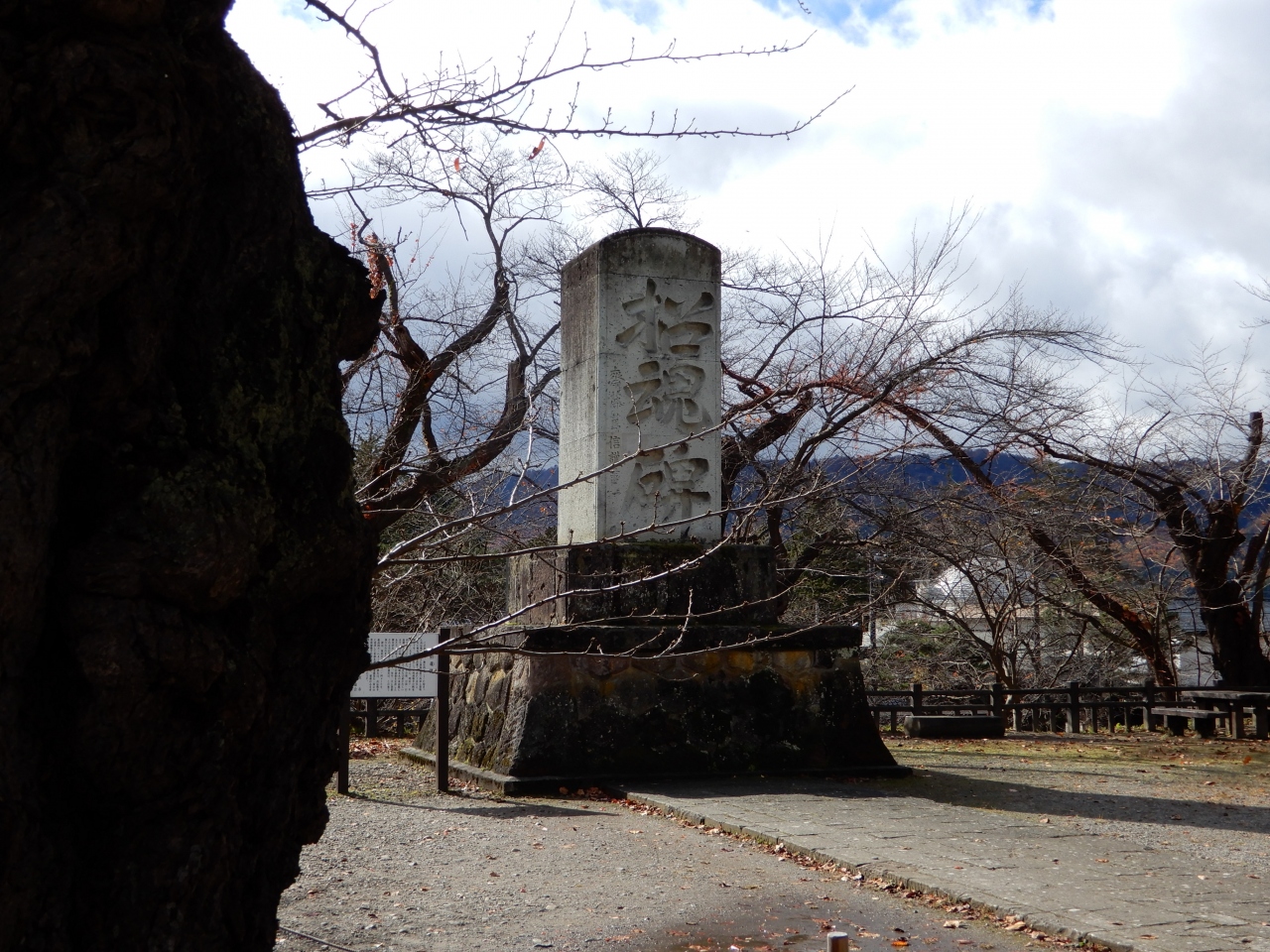 松岬公園の舞鶴橋をわたって上杉神社に向かう左手に高台となっている場所があり、緩やかな階段を登ってみるとこの石碑がありました。この大きな石碑は幕末の戊辰戦争、その後勃発した西南戦争で戦死した米沢の戦死者を慰霊する目的て造られたものです。 故郷を少しでも高台から見下ろせる場所にとここに設置されているかと思いますが、その思いと反対に参拝者の多くはこれに気付かず素通りしてしまっていました。