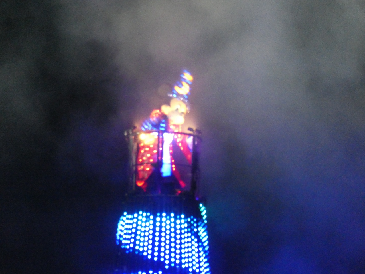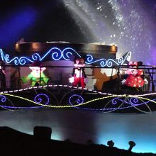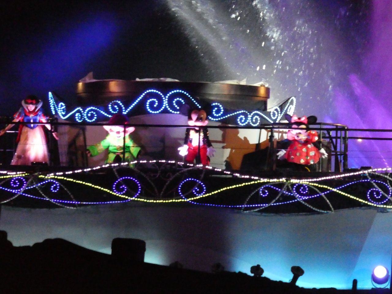 ファンタジアのミッキーやヴィランズなどが登場し、スクリーンに映像が映し出されたり、パイロが上がったりと楽します。
