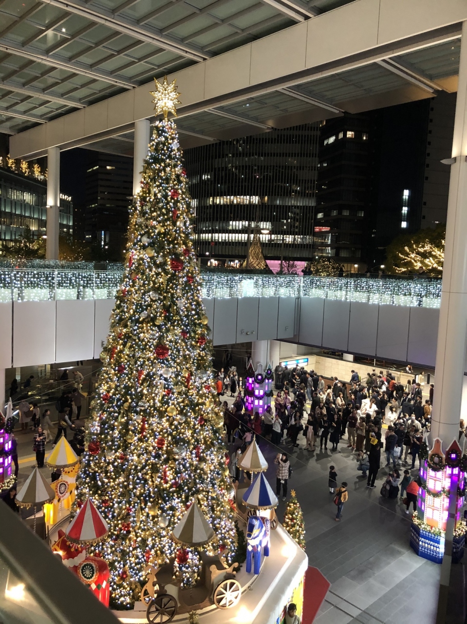 クリスマスツリーが綺麗と金シャチ横丁で知り合った人に教えてもらい、ドニチエコきっぷも持っていたので地下鉄で向かいました。栄から2駅で、綺麗なツリーが飾られていました