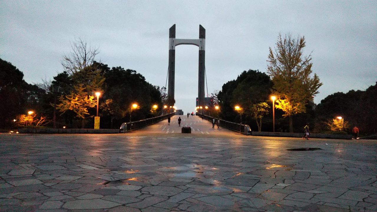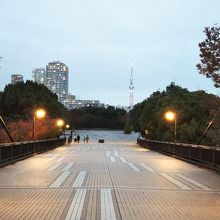 都内としては広めの公園で、道路を挟んだ反対側にも公園が広がっている。2つの公園を大きな橋で結んでおり、ジョギングや散歩の人が利用している。橋の真ん中からはスカイツリーが見えるため、周りの景色を楽しみながら利用もできる。