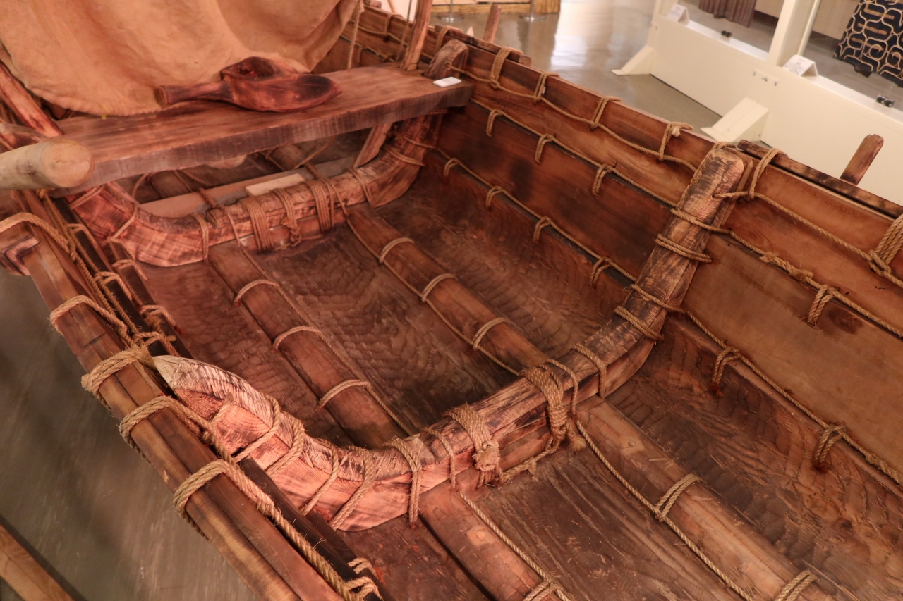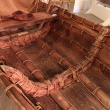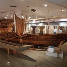 木造小型船ですが、木や布の枠合わせ、紐で固定しているだけなのですが、浸水無く航行できると解説を聞いてびっくりしました。