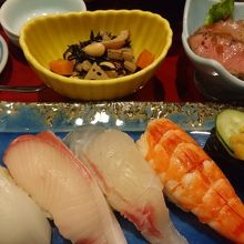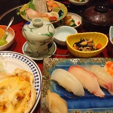 大島にあるお寿司屋さんです。とても広く立派な店構えです。電話で予約をしたのですが、夜にもかかわらず、ランチメニューを出してくれました。とても安く、しかし、豪華なランチでおいしくいただけました。お寿司にグラタンや茶わん蒸しなどいろんなおかずがいただけました。
