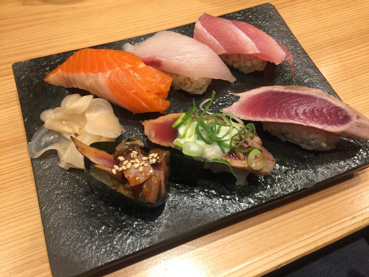 食べたのは鮪、ハマチ、サーモンの握りに欲張りカツオ三貫!