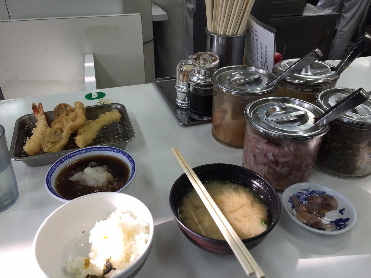 特にイカの塩辛が最高で、天ぷらが来るまでにご飯1杯完食してしまいます。