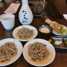 昼頃になると、メインストリートのお蕎麦屋さんは長蛇の列です。たくみやはメインストリートから少し外れているので隠れ家的お店です。それでも少し並んでいました。中に入ると囲炉裏がありホッとする雰囲気です。お蕎麦は3皿、薬味は大根おろし、ネギ、山芋です。つゆは鰹節の香りがして美味しかったです。