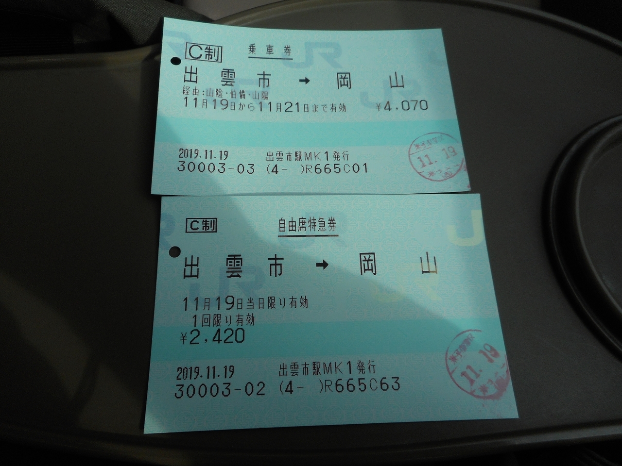 出雲市駅→岡山駅間を利用しました。自由席を利用しましたが、米子駅までは乗車率は高めでした。車両はかなり年季が入っているので、座席にはコンセントがありません。また車内販売がなく、途中駅での長時間停車もないので、乗車前に飲み物や食べ物を購入するのをお忘れなく!
