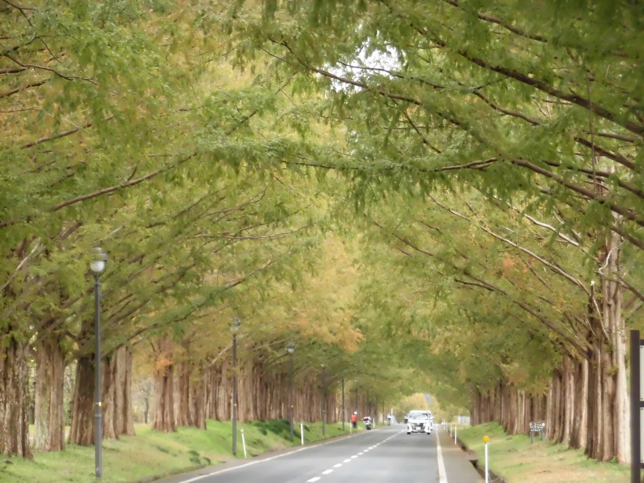 道路の両側に植えられたメタセコイア並木は一見の価値があります。
