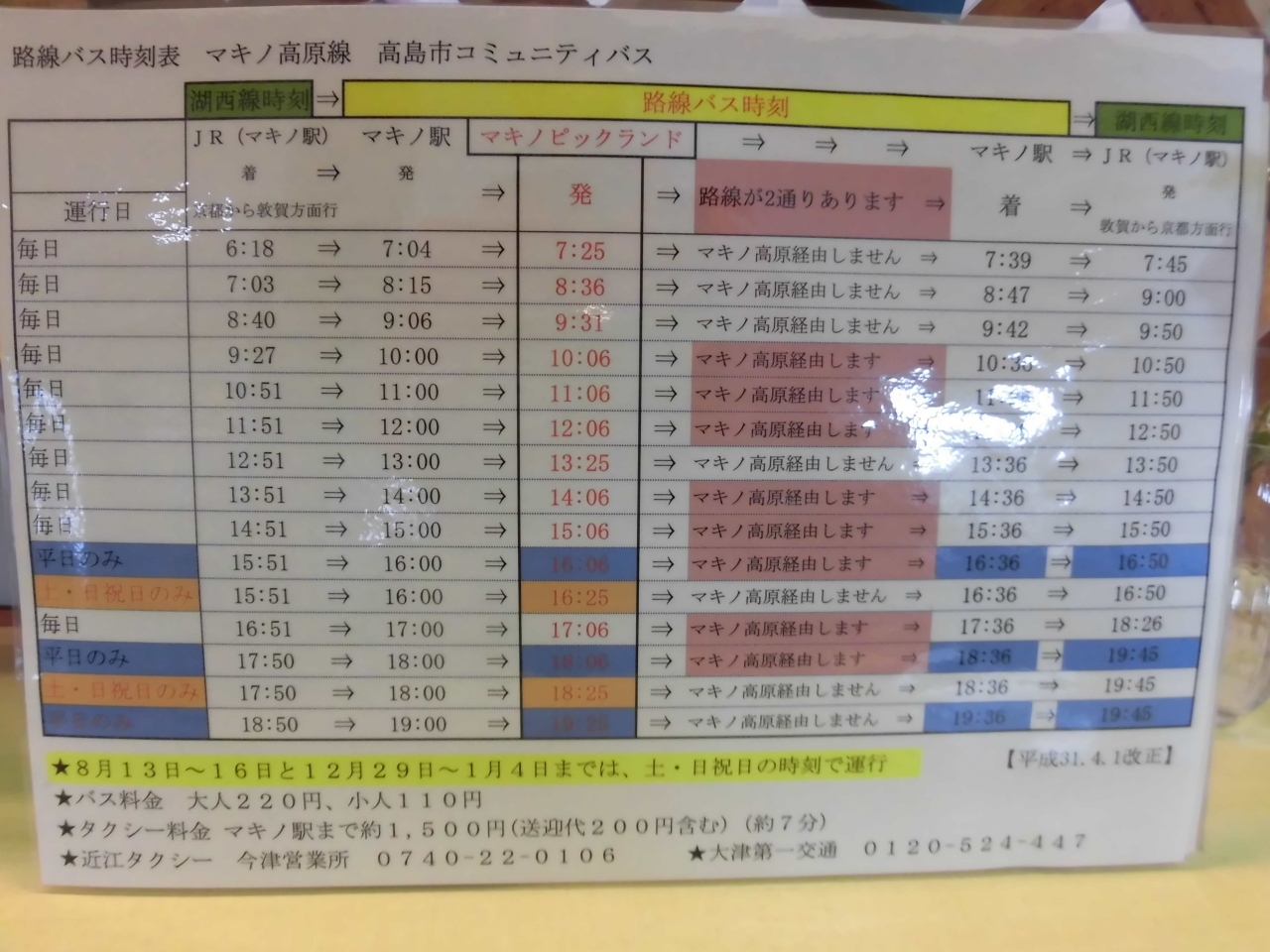 JRマキノ駅下車、バスで約10分(1時間1本ぐらい)、または歩いて約40分。
