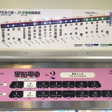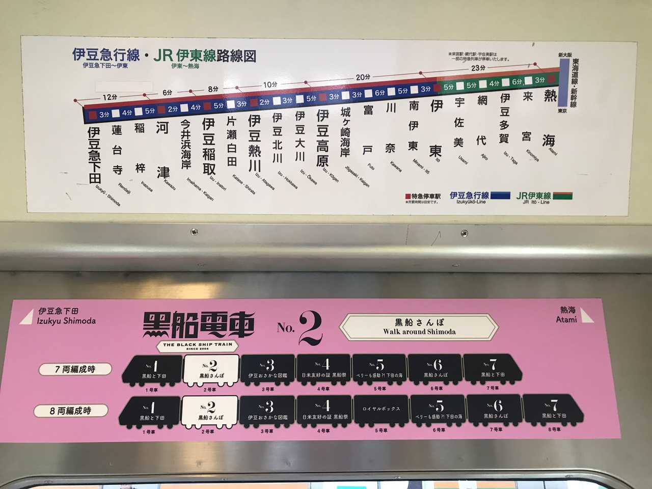 JR伊東線熱海駅から伊豆急行線下田駅までを走る黒船電車は、幕末黒船襲来をイメージした車体が真っ黒に塗られている観光リゾート電車。