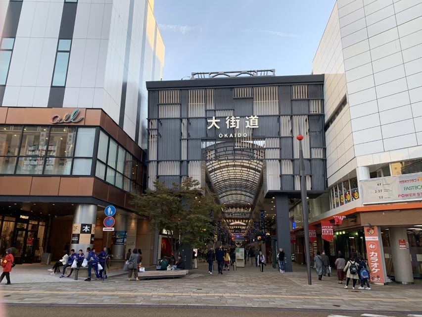 大街道駅から松山市駅へ伸びるL字の商店街。道幅は非常に広くアーケードになっているので雨の日でも安心して歩けます。どこの街にでもあるチェーン店が多く、これと言って特徴は無いかも・・・。観光地では無いので、そういう利用には向かない。