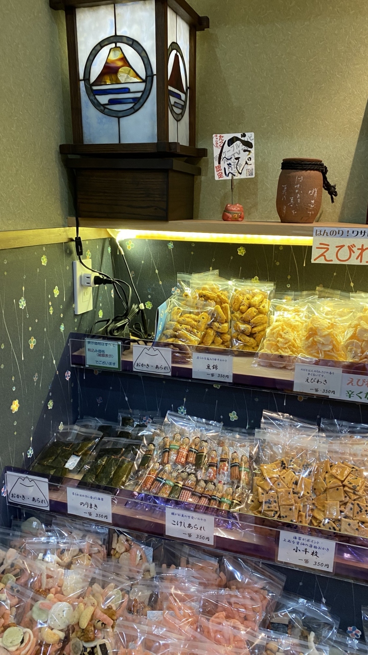 江戸時代から続く老舗のおせんべい屋さんの富士の山菓舗。街道沿いにあるのですが、歩道に飼い犬がいて可愛い姿なのもまたよいです。店主はカメラとマックが好きな方で思わず話が弾んでしまいました。江戸風のおせんべいもありますし、いろいろあっておいしいです。
