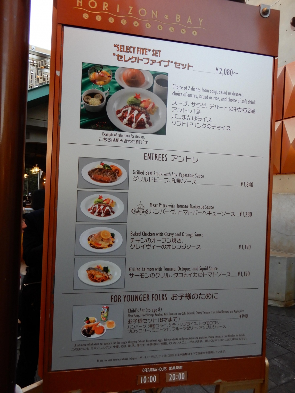 ポートディスカバリーのエレクトリックレールウェイの駅の下にあるレストランです。以前はディズニーキャラに会えたサービスをしていたので、予約をするのが困難でしたが、6月に終了してからは普通に入れるようです。基本的には自分で好きな料理をトレーにとって会計するシステムのようです。今回はセレクト5というセットにしましたが、割り増し料金メニューもあるので、事前に決めておくといいと思います。