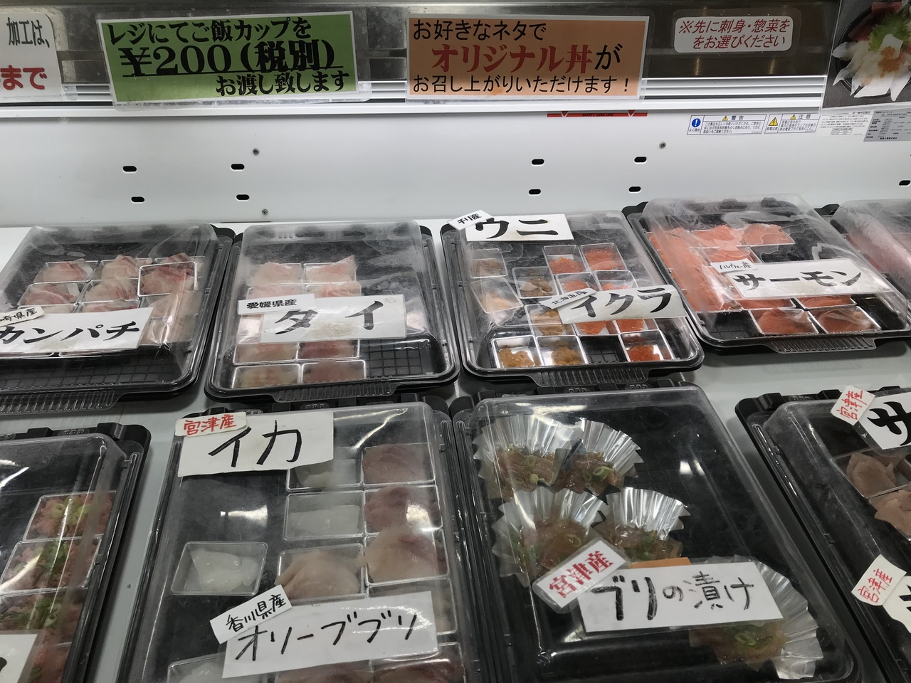 レストランは魚屋さんが入っていて自分だけの海鮮丼を作れます。