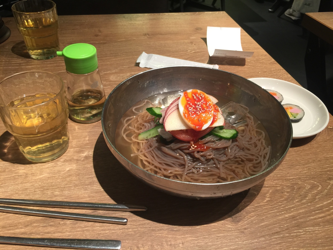 食べたのは韓国冷麺の大盛!韓国冷麺、大好きなんだよね!お酢を大量にかけて、あぁ美味いですね!