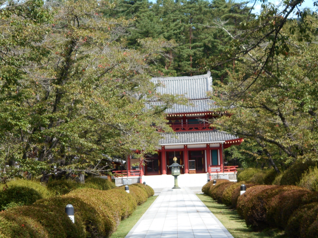 蓼科ビーナスライン沿いでの蓼科高原カントリークラブの北に建つ1970年建立の法相宗寺院。奈良・薬師寺の別院でトヨタ自動車名誉会長の神谷正太郎氏が創建した交通安全を祈願した寺院です。広い境内は桜の名所としても知られまた紅葉の時期も人気の寺となっているようです。さすが世界のトヨタですね。